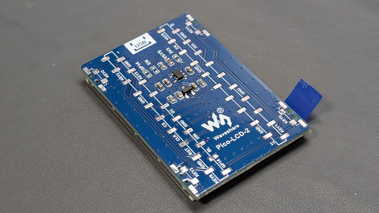 Waveshare のラズピコ用 LCD モジュールは入手しやすくて良いですが、 ピンソケットの高さの分厚くなるので除去して薄くしてみました。